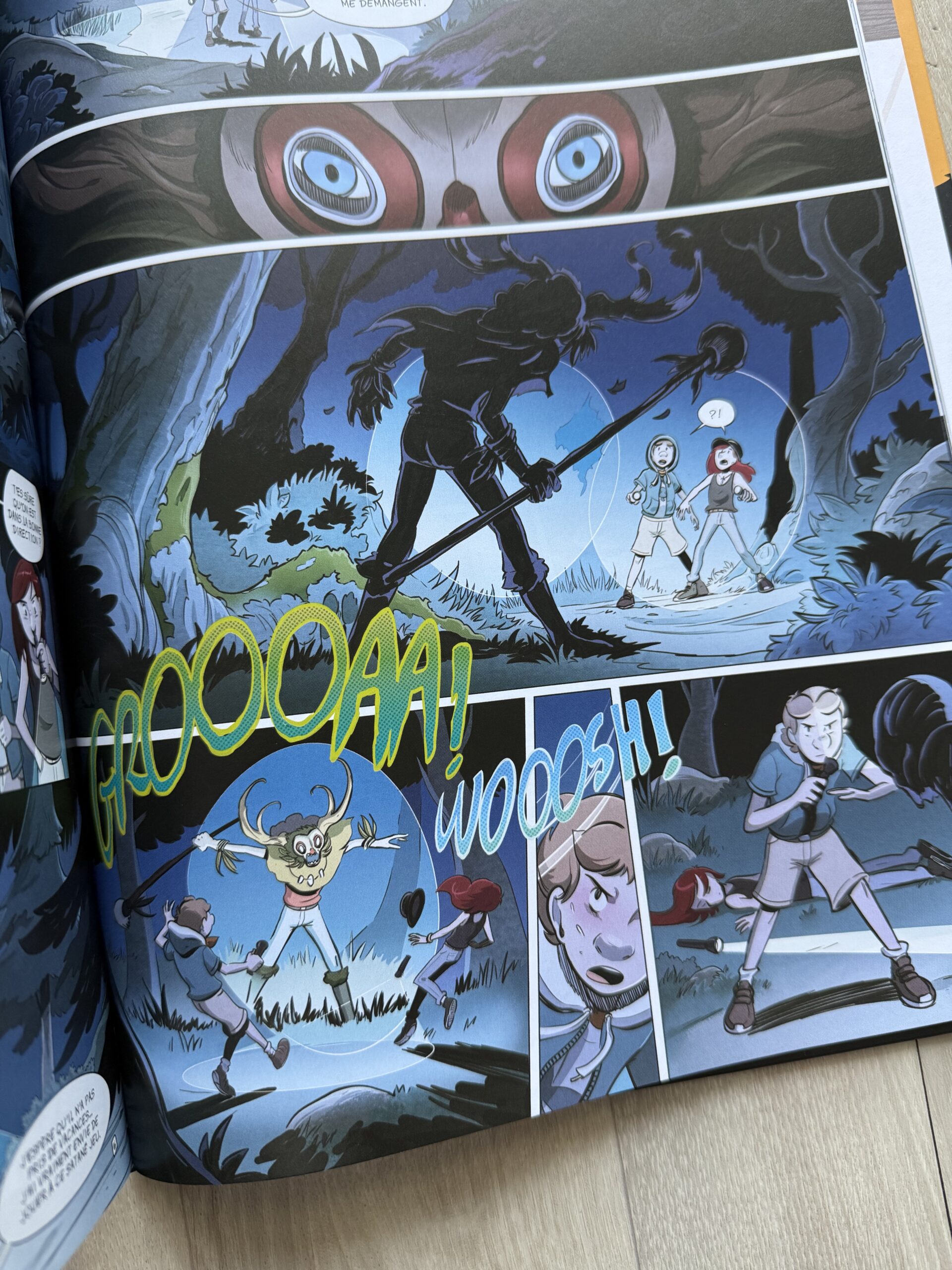 Le dessin et les couleurs créent une ambiance vivante et légèrement mystérieuse. Les visages sont expressifs, les décors soignés, et les scènes qui font peur sont toujours adaptées au jeune public. Une BD pleine de charme et de bonne humeur, à la fois drôle, tendre et un brin effrayante. Une belle découverte à glisser entre toutes les mains, petits ou grands lecteurs en quête d’aventure douce et de sensations légères.