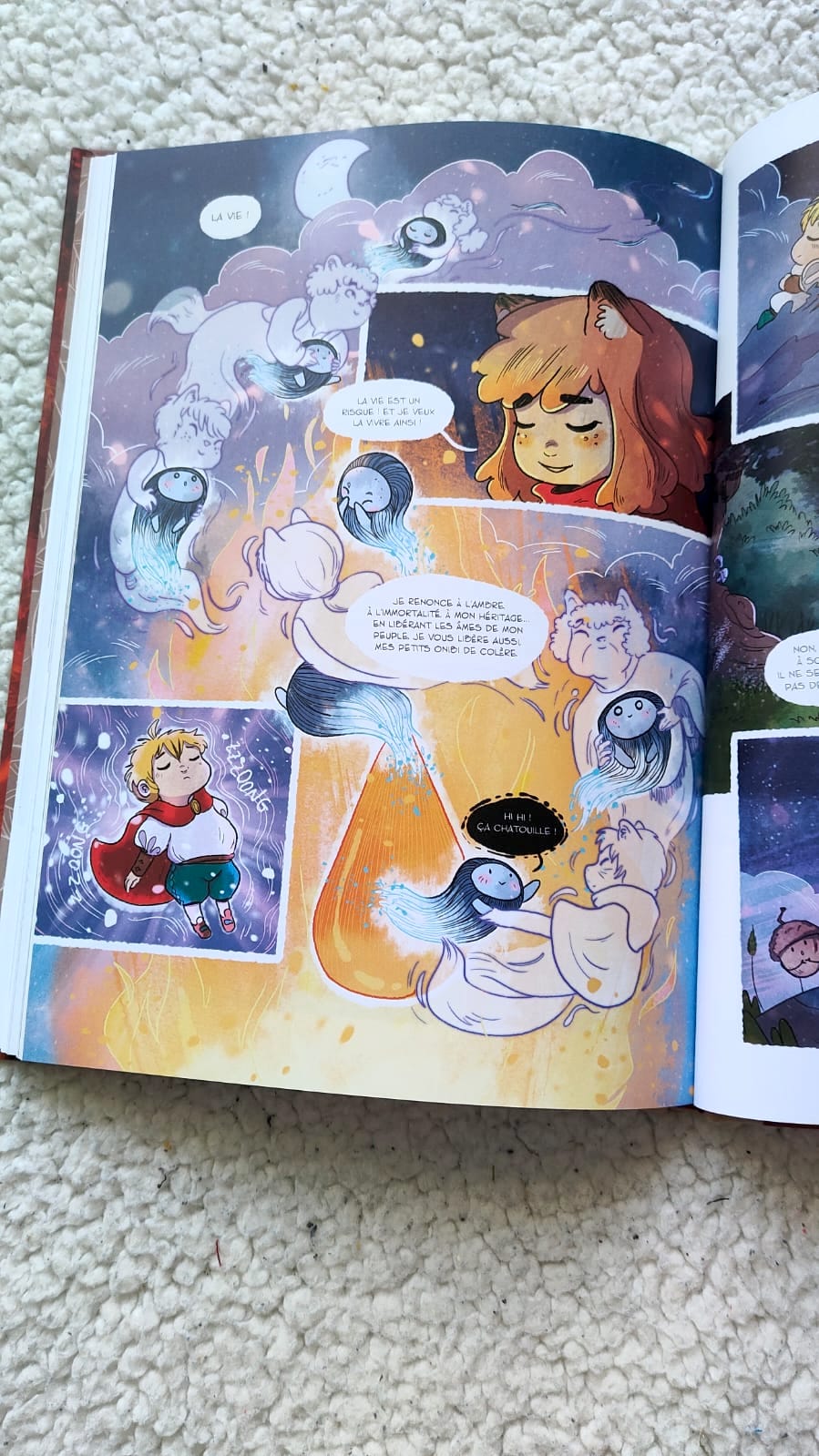 Les illustrations sont magnifiques ! Fidèles à l’esprit du texte et à cette idée enivrante de la forêt et de ses esprits. Chaque page est une merveille à contempler avec des couleurs lumineuses et explosives. On ne s’en lasse pas, du début à la fin. Une BD que je ne peux que conseiller et recommander au plus grand nombre.