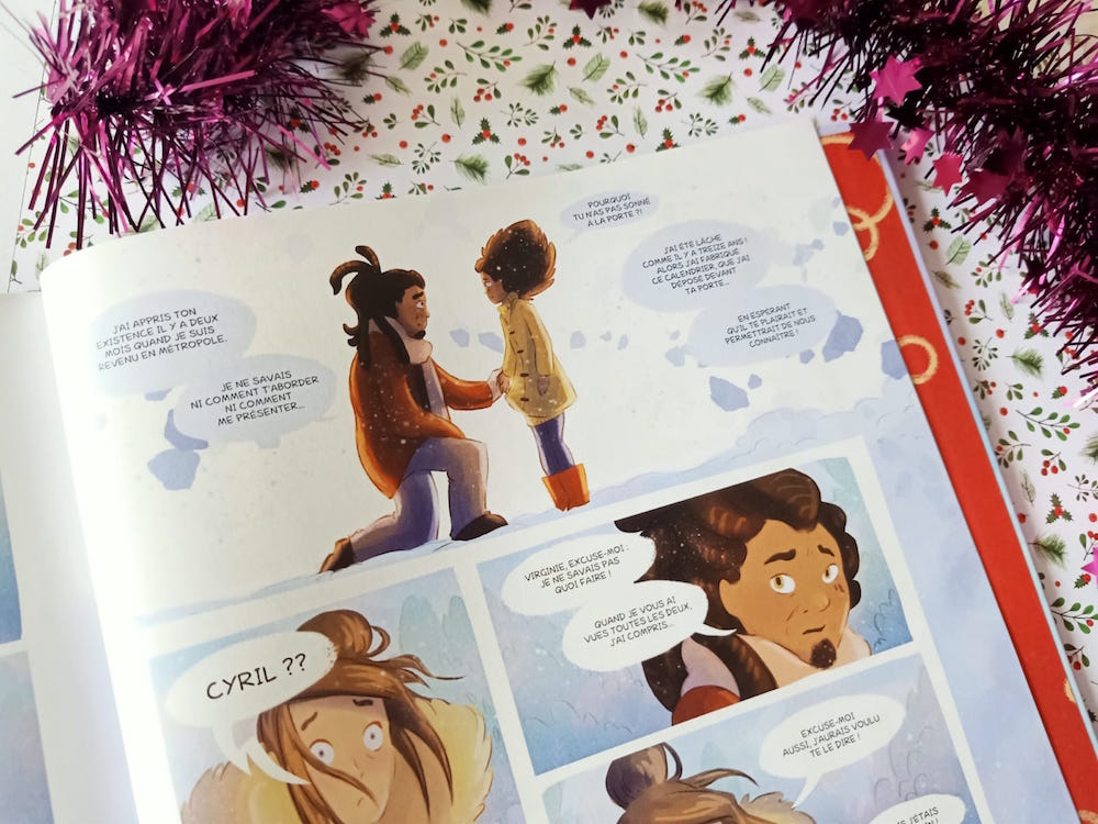 J’ai trouve cette bande dessinée très jolie. Avant de la lire, je vous avoue, je ne savais pas trop à quoi m’attendre, mais la couverture m’a plus, le titre évoquait Noël, il m’en fallait pas plus pour craquer ! Et finalement, j’ai bien fait car on retrouve ici une série vraiment sympathique avec de bons sentiments. Il est question ici d’amitié, d’amour, de Noël, mais aussi et surtout de famille. On est face à une jeune fille qui ne connait pas son père. Elle s’interroge sur lui et aimerait en savoir plus. Dans le même temps, cet étrange calendrier apparait. Où tout cela va mener notre héroïne, vous le saurez en lisant cette BD, car je ne voudrais pas gâcher votre plaisir.