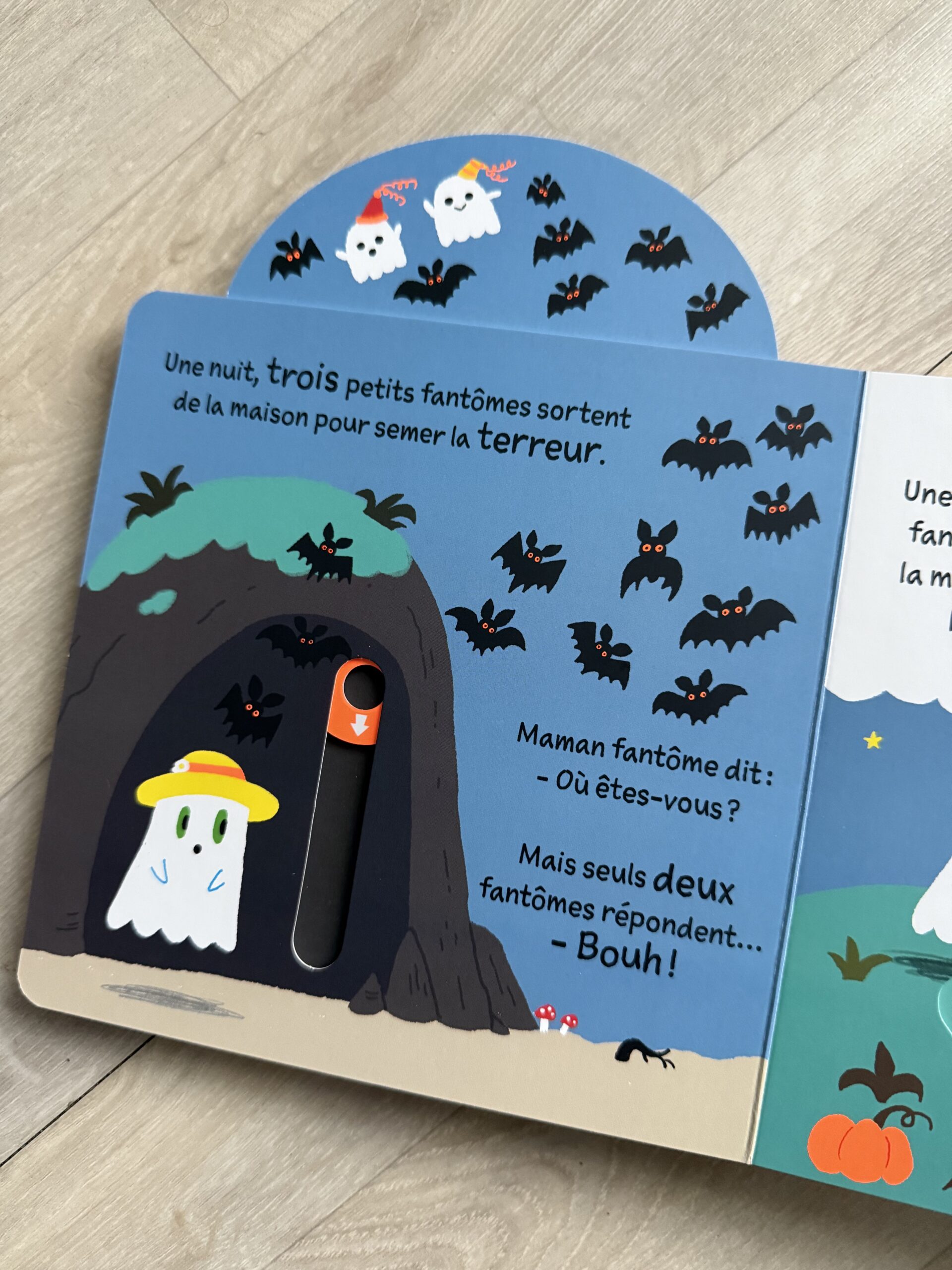 Avec Isaac on a eu un vrai coup de cœur pour ce petit album ! C’est d’ailleurs son premier livre d’Halloween ! L’histoire est toute simple, mais l’interactivité rend la lecture vraiment vivante. Les enfants adorent chercher les fantômes cachés, et les rires sont garantis. C’est un livre qu’on lit et relit avec plaisir, surtout le soir, quand la lumière est douce et qu’on se glisse dans une ambiance un peu magique.
