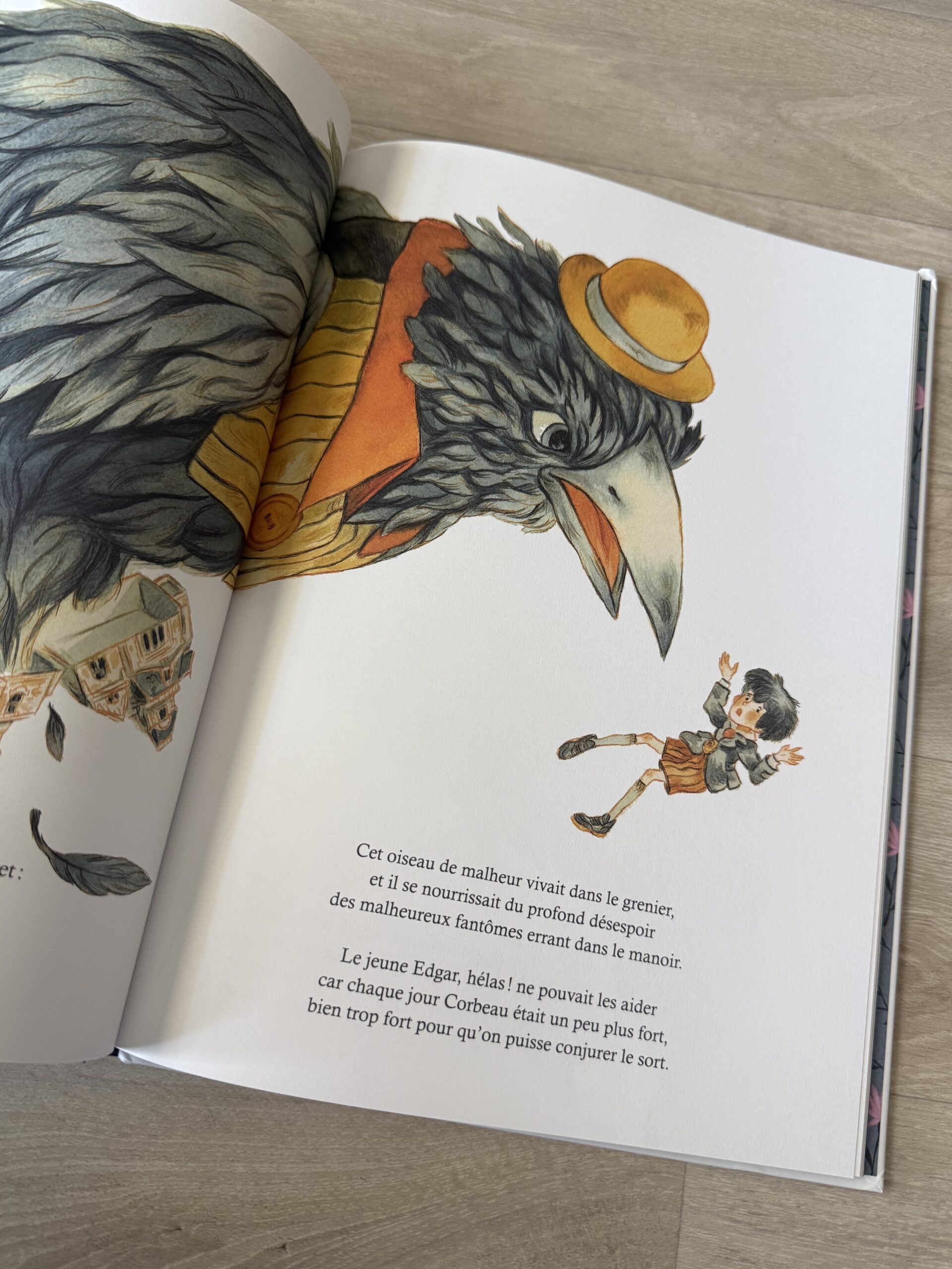 Mon avis : Aujourd’hui, je vous parle d’un album aussi mystérieux que poétique : Edgar et la malédiction du corbeau, une belle découverte signée Little Urban, qui nous plonge dans un manoir peuplé de fantômes… mais plein de tendresse !