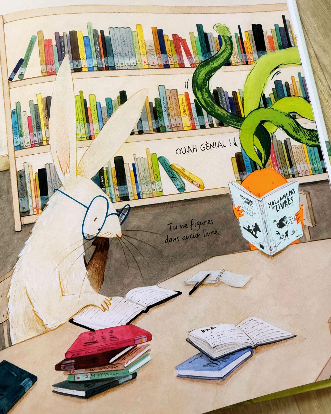 Cet album est une petite pépite pleine d’humour et de tendresse. Le contraste entre le caractère réservé de Monsieur Lapin et l’énergie débordante de la carotte crée des situations amusantes qui font sourire les enfants comme les adultes. Derrière cette histoire légère se cache aussi un joli message sur l’ouverture aux autres et l’amitié qui arrive parfois là où on ne l’attend pas. La lecture est rythmée, avec des répétitions et des situations comiques qui fonctionnent très bien à voix haute.