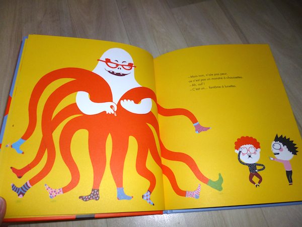Dans cette histoire pour enfants, un enfant découvrent un monstre à chaussettes effrayant ! Heureusement son copain est là pour le rassurer ; ce n’est pas un monstre à chaussettes ! Mails ils découvrent avec horreur que c’est un fantôme à lunettes ! Quelle horreur ! Mais un autre copain les rassure, et ce monstre se transforme encore, …