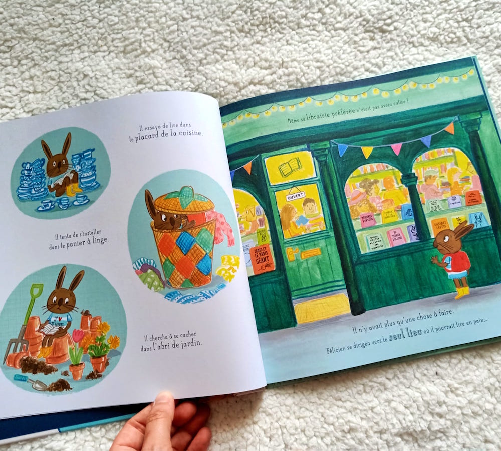 Félicien est un jeune lapin qui adore lire. Le seul problème c’est qu’il vient d’avoir un petit frère et ce dernier est très bruyant. Impossible pour Félicien de lire dans le calme. Il décide donc de se rendre à la bibliothèque pour être un peu tranquille. Mais qu’elle ne fut pas sa surprise de constater que son livre est tout grignoter ! Félicien va alors mener son enquête pour découvrir qui est derrière ce crime !