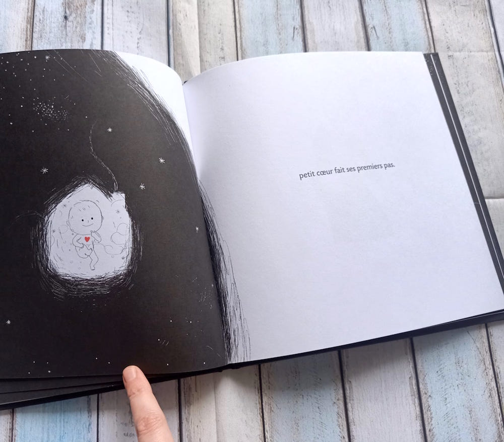 Présentation de cette histoire pour enfants : Un voyage de l’infiniment petit à l’infiniment grand pour raconter l’arrivée d’un petit cœur sur terre… au sein d’une famille pleine de cœurs qui battent déjà en l’attendant.