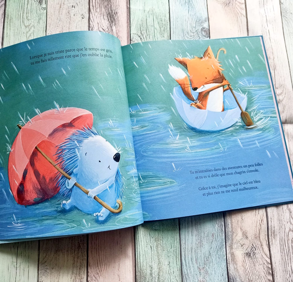 Cet album est un vrai petit concentré de douceur. On retrouve ici deux petits amis, un renard et un hérisson. Ils sont les meilleurs amis du monde. Cet album est un peu une déclaration de l’un à l’autre. Une déclaration universelle que n’importe qui pourrait écrire à son ou sa meilleure amie. On retrouve ici beaucoup d’amour et de tendresse.