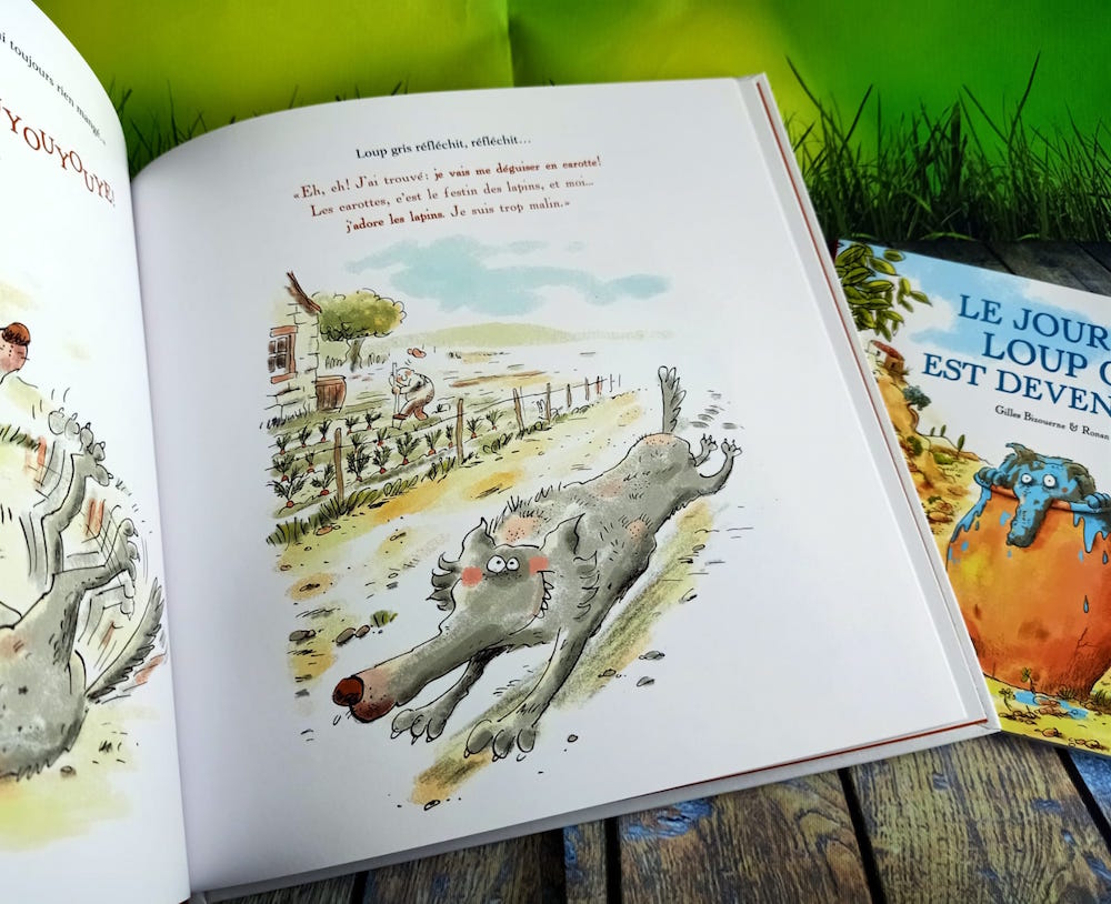 Les illustrations de Ronan Badel sont vraiment très sympathiques. J’aime beaucoup le côté très expressif de ce Loup Gris. Cela le rend vraiment très drôles. Un univers vraiment très sympa !