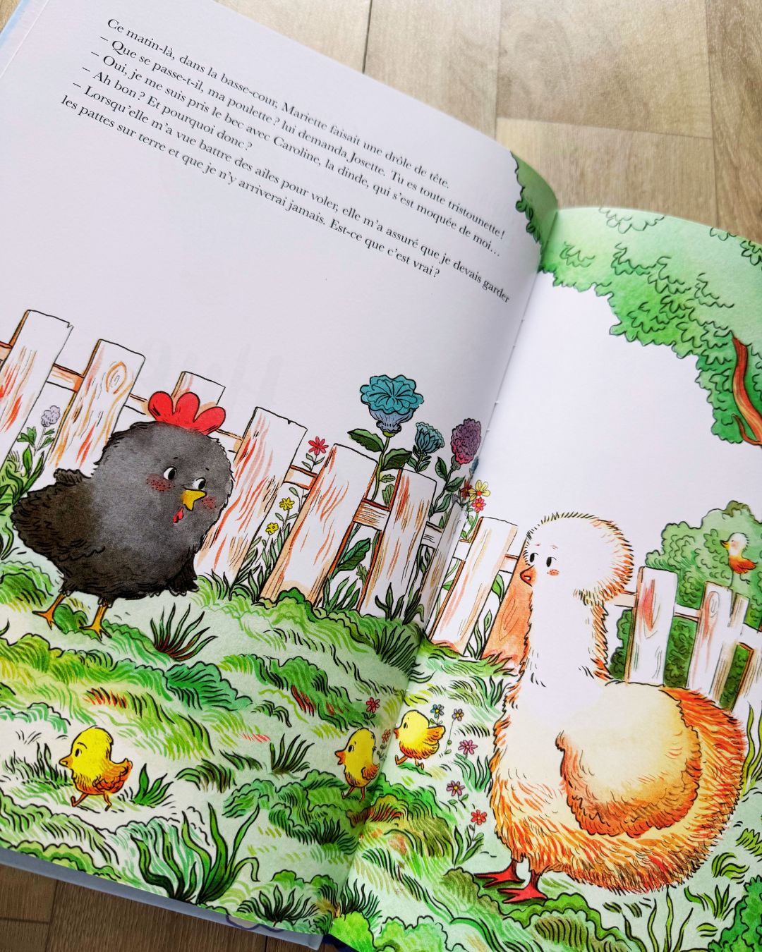 C’est un album qui m’a beaucoup touchée par sa simplicité et la justesse de son message. On y retrouve une thématique universelle : le sentiment de limitation et le désir de se dépasser. J’ai particulièrement aimé la manière dont l’histoire aborde la confiance en soi sans jamais être moralisatrice. Le duo Mariette/Josette fonctionne à merveille, avec une belle complicité et une énergie communicative. C’est un livre qui donne envie d’encourager nos enfants à croire en leurs capacités, même lorsqu’un objectif semble inaccessible.
