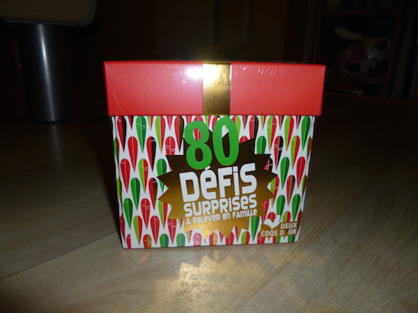 Présentation de ce jeu en famille : Un nouveau jeu pour animer les fêtes de famille ou jouer entre amis ! Cette jolie boite en forme de cadeau de Noel contient une foule de petits papiers pliés. Ce sont 80 défis divisés en 4 grandes catégories, toutes identifiées par un symbole.