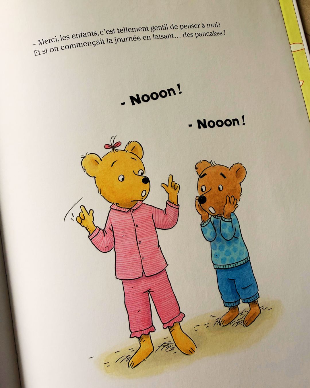 Aujourd’hui, c’est la journée du Oui ! Quoi que demandent Tim et Clara, leur maman répondra oui. Mettre des bonbons sur les tartines du petit-déjeuner, faire du patin dans la salle de bain, sauter sur les lits… les idées ne manquent pas et l’enthousiasme est au rendez-vous. Les enfants savourent cette liberté inattendue, testent, explorent, exagèrent parfois. Mais au fil de la journée, ils découvrent aussi que si Maman dit parfois non, ce n’est jamais sans raison. Derrière chaque limite se cache une intention : protéger, organiser, accompagner.