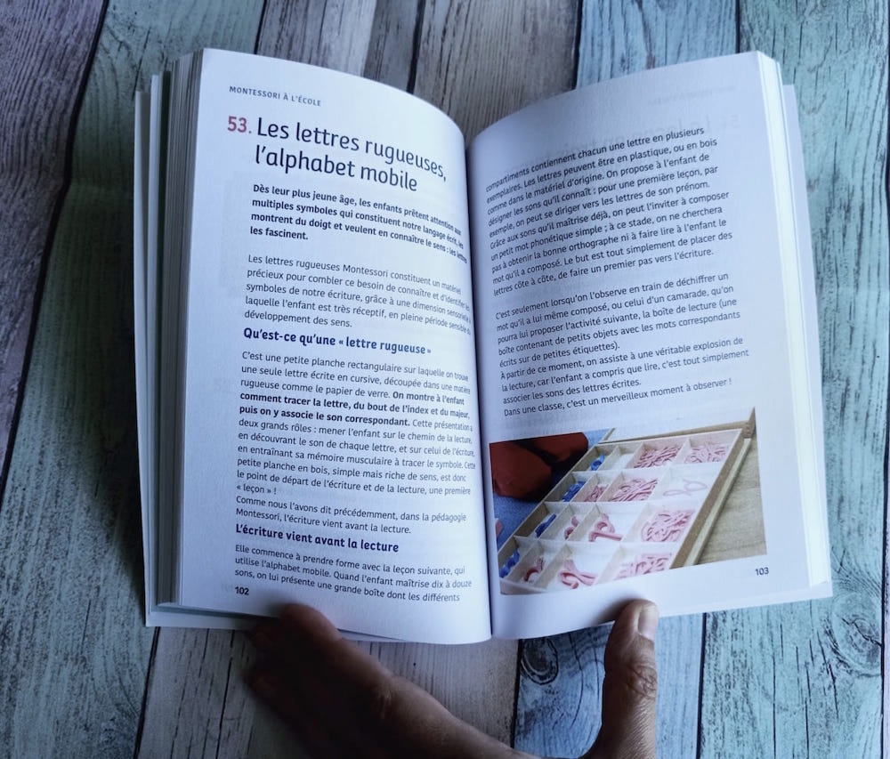 Ce livre se découpe en trois grandes parties : Les fondements de la pédagogie, Montessori à l’école, et Montessori à la maison. De quoi avoir un large panel de ce que peut offrir la pédagogie Montessori.