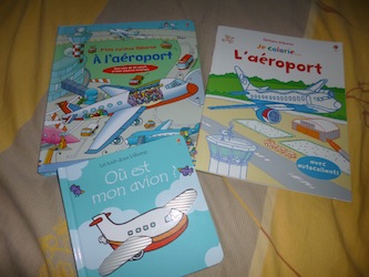 Ce livre pour enfants est évidemment vendu avec le petit avion, mais il est absent sur la photo, puisque des petites mains me l’ont dérobé.
