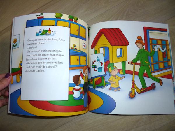Dans ce livre pour enfants, Caillou est à la garderie et il y a un nouveau bac de tri sélectif. Ce dernier suscite la curiosité des enfants qui posent plein de questions à Anne aussi intéressantes les unes que les autre. Anne y répond avec simplicité et amusements.