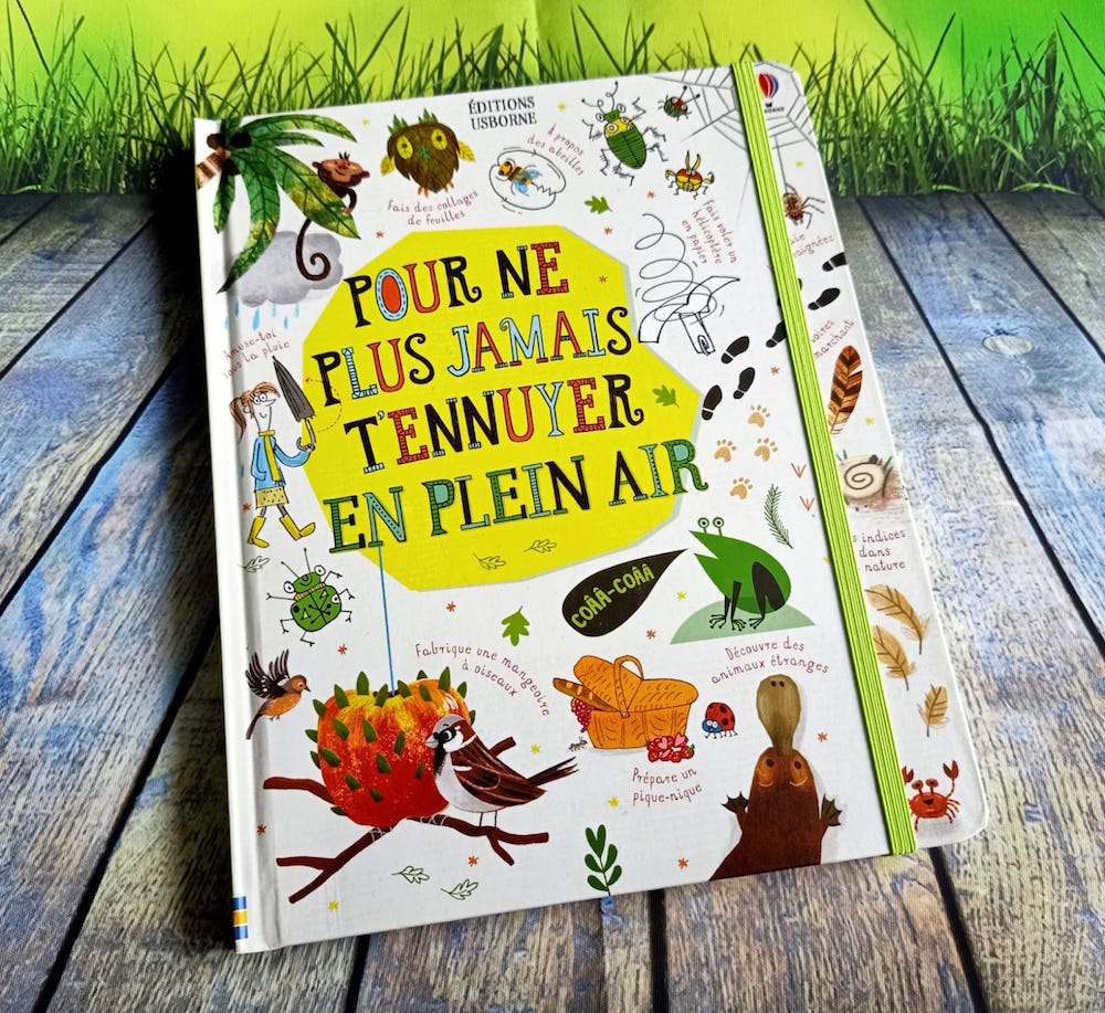 Présentation de ce livre pour enfants : Un livre à emporter dehors pour ne plus jamais dire « je m’ennuie » ! Il fourmille d’activités : quiz, instructions pour fabriquer un hôtel à insectes, reconnaître les étoiles ou les oiseaux, dessiner des animaux ou écrire un poème sur la nature. Il y a aussi des liens vers des sites Web pour découvrir encore plus d’activités de plein air. Avec ce livre, où qu’on soit, impossible de s’embêter !
