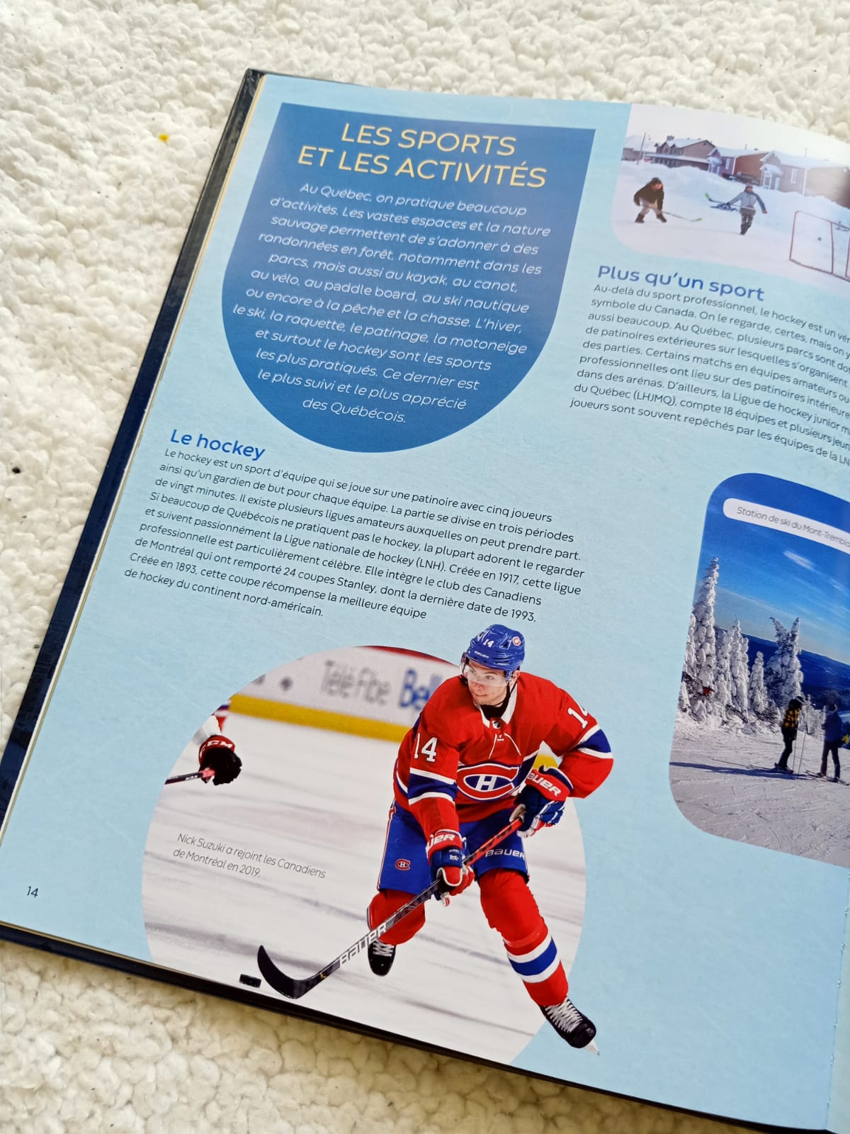 J’aime beaucoup cette collection simple et très jolie qui permet de découvrir un thème bien précis. Ici, donc c’est le Québec et on retrouve un tas de petites informations simples et essentielles pour parfaire sa culture générale. Tout cela est expliqué au travers de petits paragraphes courts et très simples à lire.