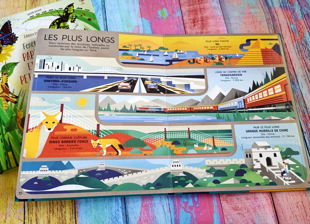 Le second livre quand à lui porte sur le thème des records. On y retrouve différents thèmes comme les plus gros, les plus rapides, les plus hauts, les plus forts, les plus longs, les plus lointains, … Ces records portent aussi bien sur l’Homme que sur les animaux, les bâtiments, les engins, …