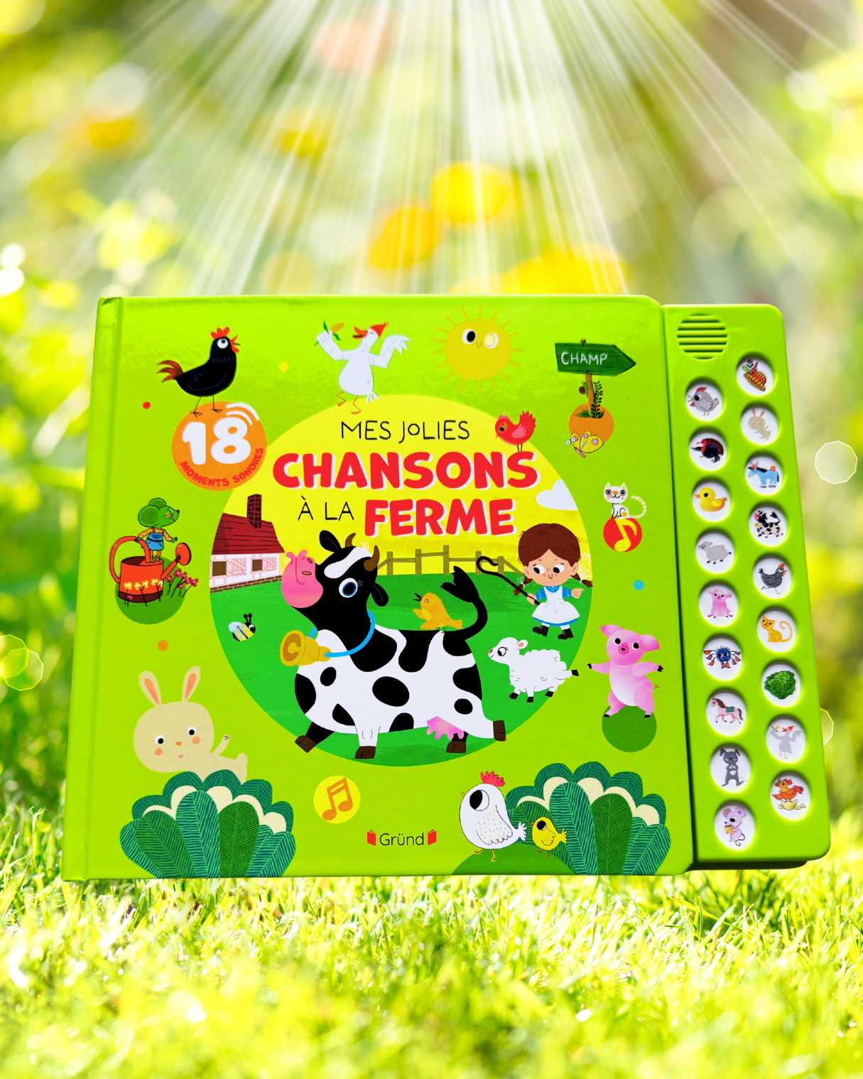 Voici un adorable livre sonore qui invite les tout-petits à découvrir l’univers joyeux de la ferme à travers les grandes chansons traditionnelles. À chaque double page, un bouton sonore à déclencher permet d’écouter la mélodie correspondante. On y retrouve des airs connus comme Dans la ferme de Mathurin, Savez-vous planter les choux ou encore Le fermier dans son pré. Il y a en tout 18 comptines à découvrir. Le format cartonné est solide et facile à manipuler, parfait pour les petites mains curieuses !