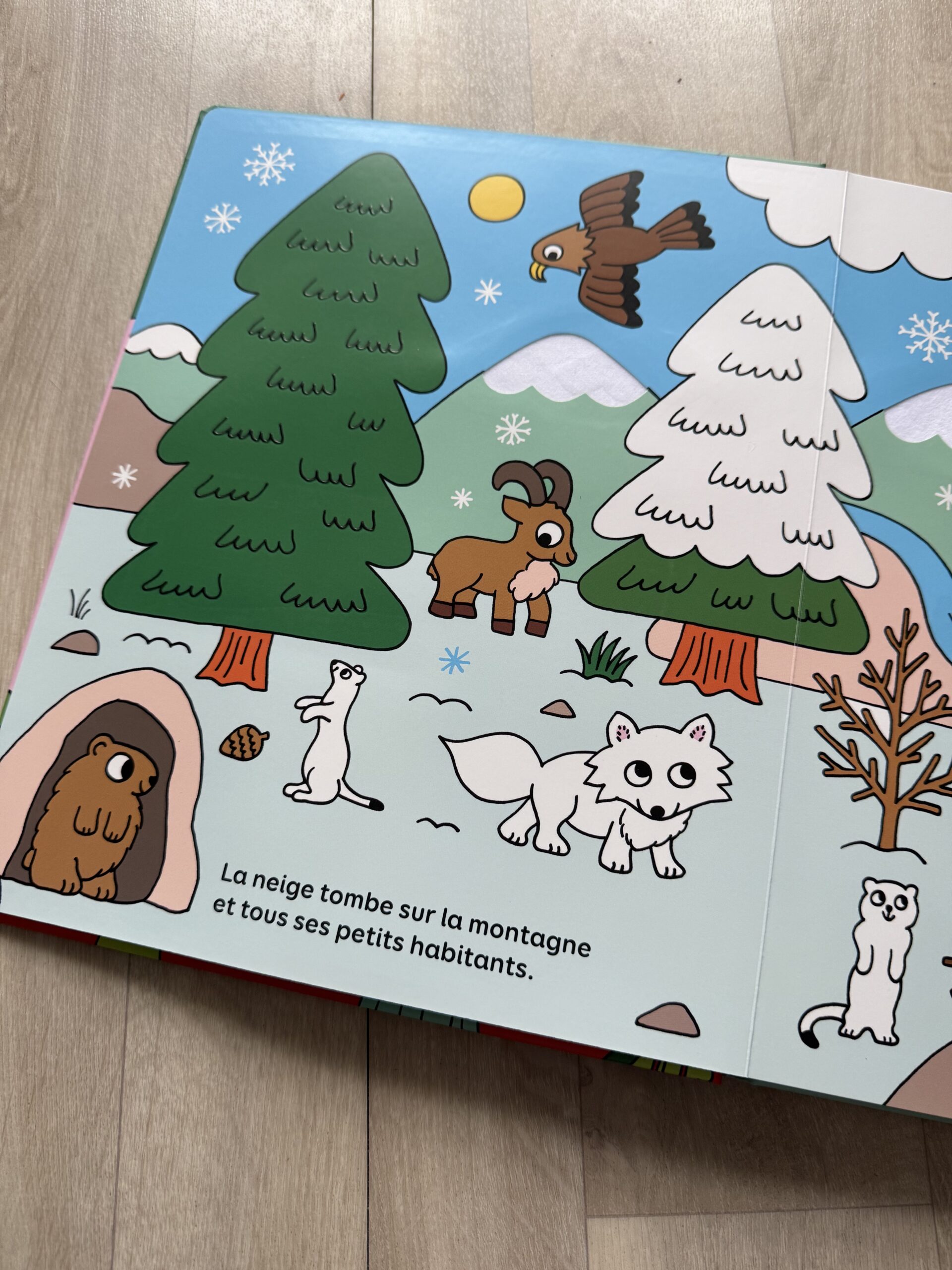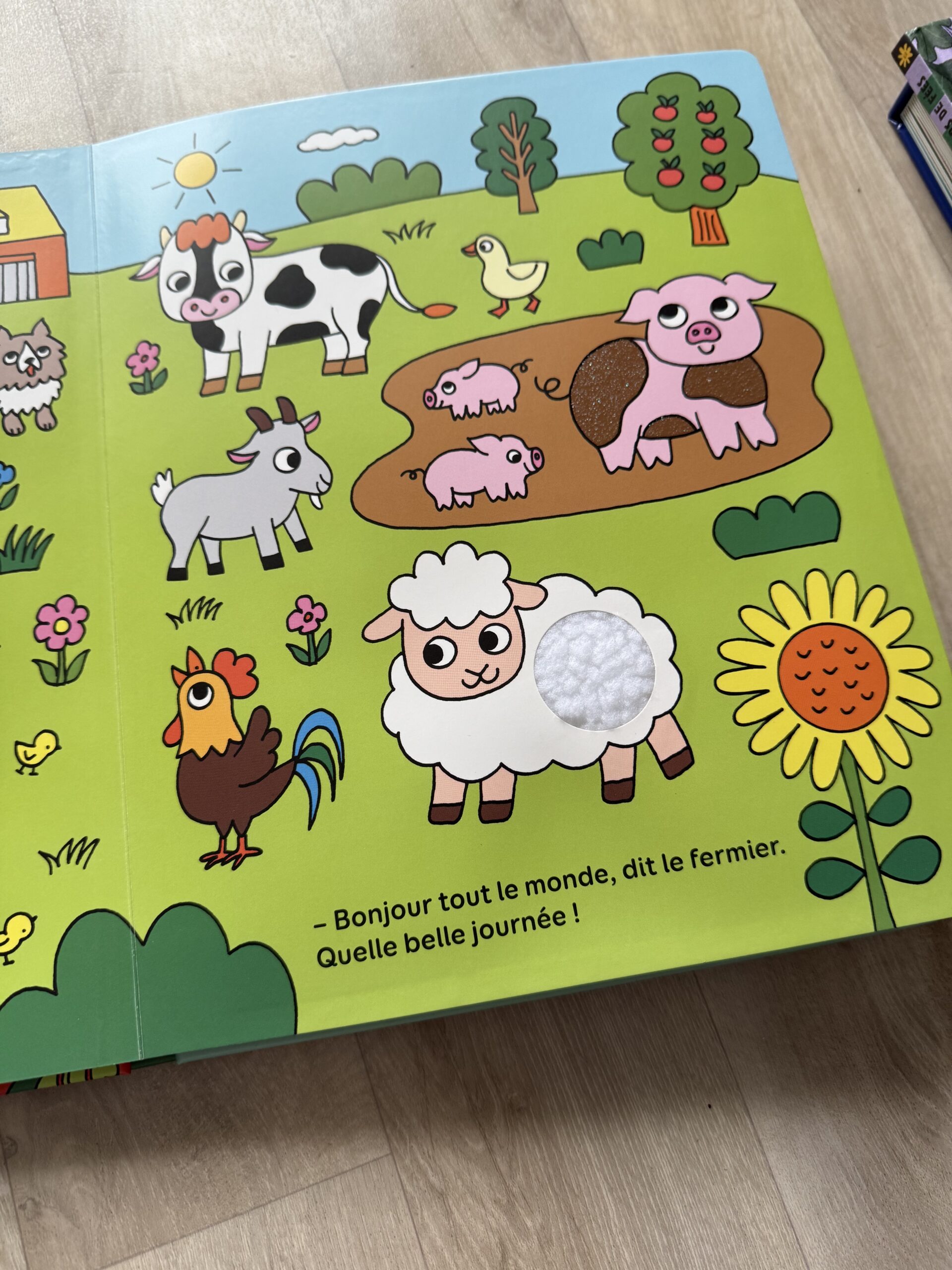 J’aime beaucoup ce type de livre d’éveil qui encourage la curiosité et le langage dès le plus jeune âge. Ici, tout est bien pensé : les textures sont agréables, les pages solides, et les illustrations attirent tout de suite l’attention des plus petits. Mon bébé adore passer ses petites mains dessus, et je dois dire que moi aussi, je prends plaisir à le feuilleter avec lui. Le grand format lui permet aussi de l’explorer seul lorsqu’il est au sol.