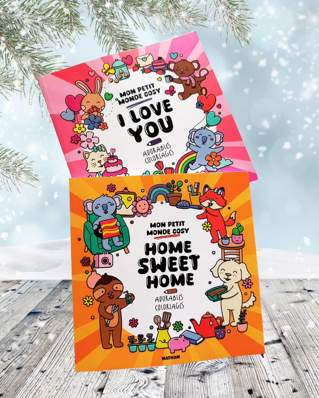 Ces livres de coloriage invitent à une véritable parenthèse de douceur et de réconfort. Déclinée en deux titres, Home Sweet Home et I Love You, cette collection plonge le lecteur dans un univers chaleureux fait de petits intérieurs douillets, de scènes du quotidien et de moments tendres. Chaque page propose une illustration à colorier, pensée comme une bulle de calme, où l’on retrouve l’esprit « cosy » très en vogue : plaids, plantes, tasses fumantes, coins lecture et instants partagés.