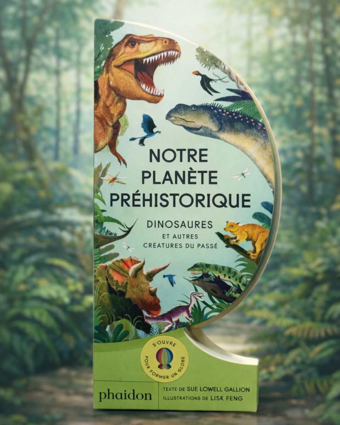 Mon avis : Publié aux éditions Phaidon, Notre planète préhistorique, écrit par Sue Lowell Gallion et illustré par Lisk Feng, entraîne les jeunes lecteurs dans une exploration poétique et documentaire des dinosaures, des premières formes de vie et de l’histoire fascinante de notre planète.