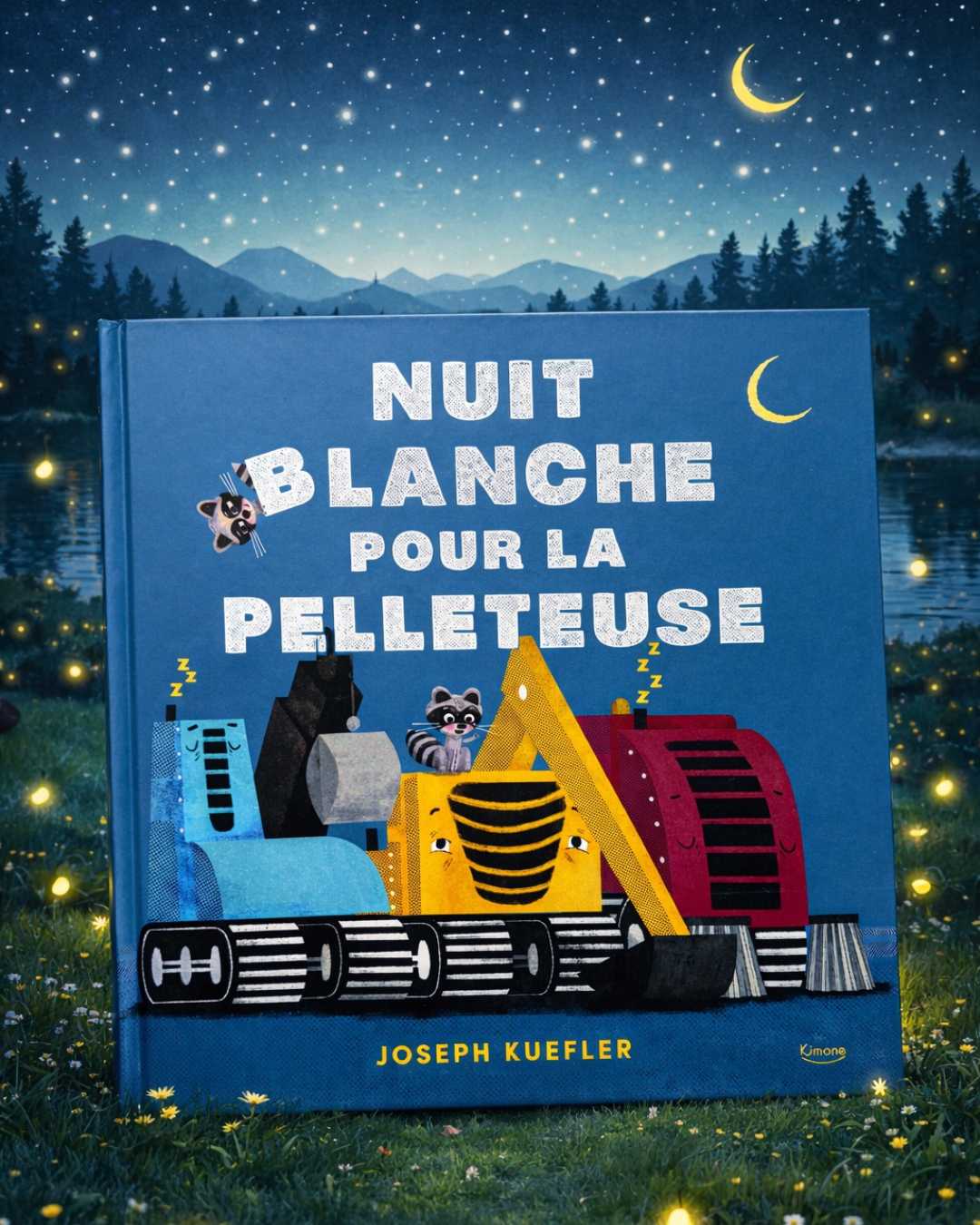 Mon avis : Nuit blanche pour la pelleteuse, écrit et illustré par Joseph Kuefler et publié aux éditions Kimane, est un album jeunesse tendre et original qui aborde avec douceur les thèmes du sommeil, de l’insomnie et de l’apaisement, le tout dans l’univers rassurant et fascinant des engins de chantier.