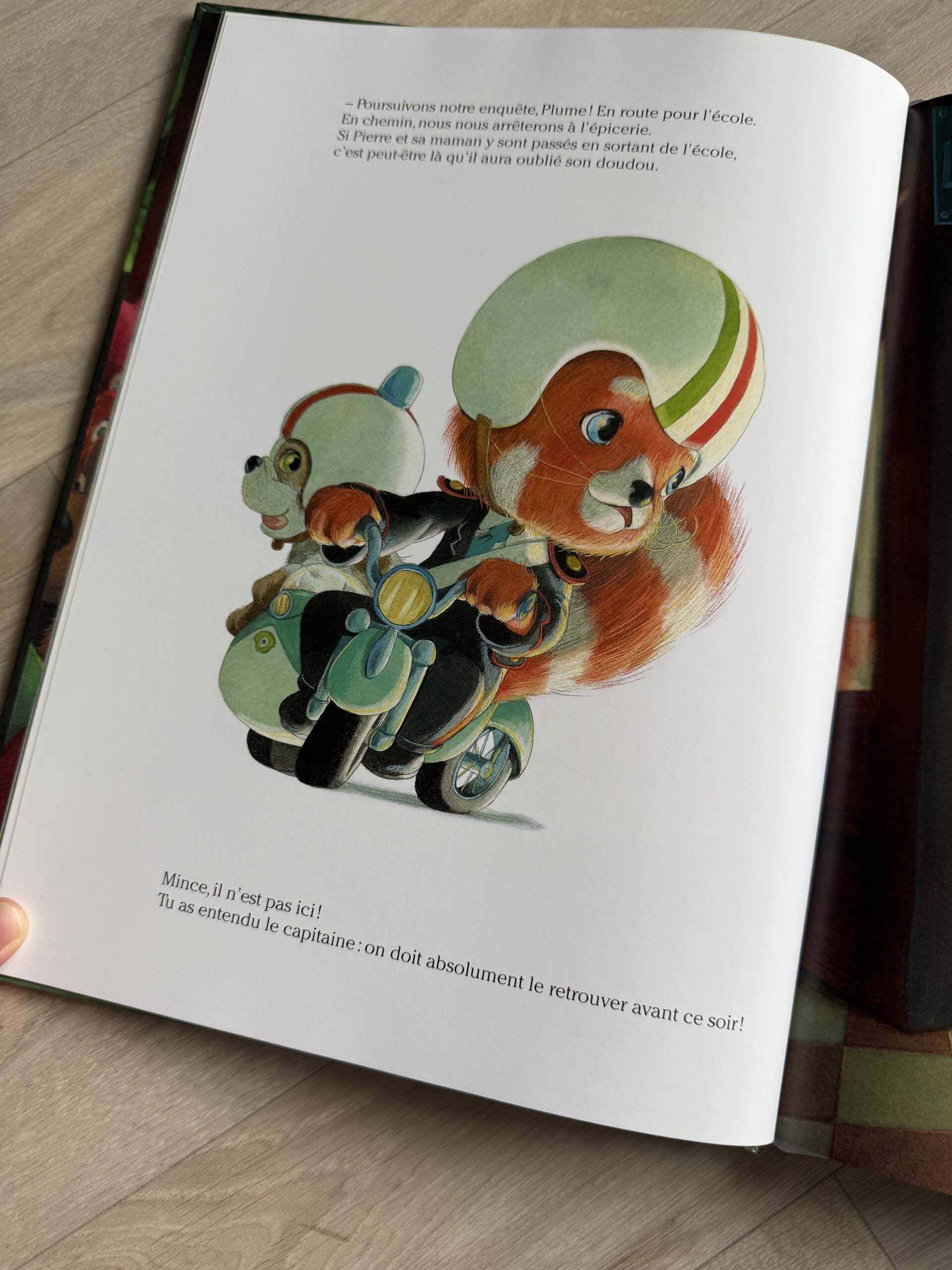 On a volé doudou est un petit album absolument craquant publié chez Mijade. On y suit unLou qui fait désormais partie de la police et qui se voit accorder sa vraie grande première mission : elle doit retrouve le doudou de Pierre avant la nuit. Lou est très déçue, elle s’attendait à quelque chose de plus palpitant. Mais, ni une ni deux Lou part en mission, accompagnée du chien renifleur Plume. On part dans une mini-enquête adorable, pleine de rebondissements et de bonne humeur.