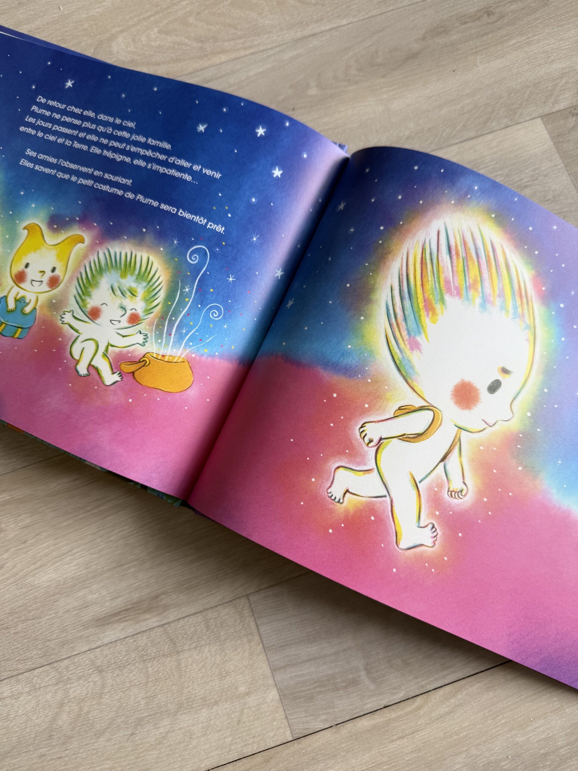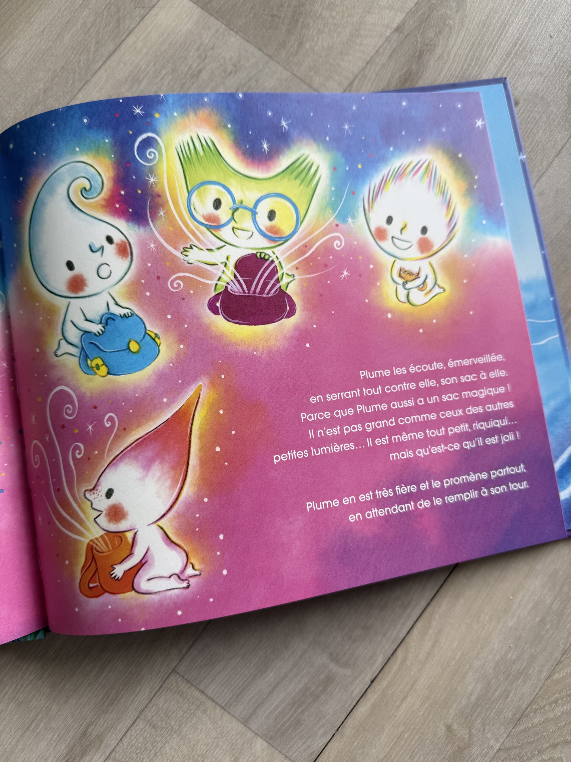 Présentation de cette histoire : Plume, petite lumière, attend patiemment son tour de se rendre sur terre. Son sac, vide, est prêt à être rempli de souvenirs, d’amour et de magie. Plume, petite lumière, attend patiemment son tour de se rendre sur terre. Son sac, vide, est prêt à être rempli de souvenirs, d’amour et de magie.