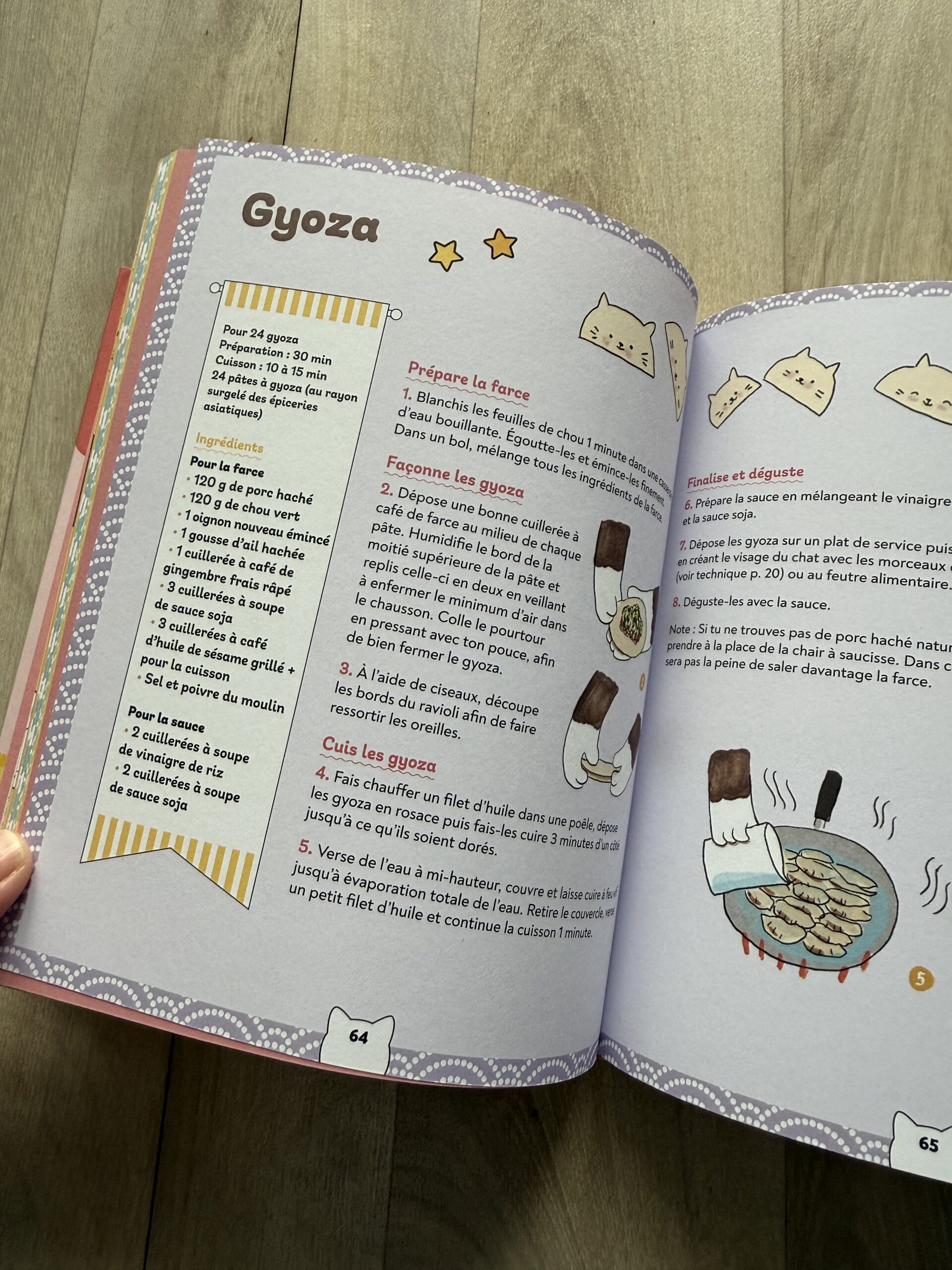 Ce livre s’adresse à tous les amoureux de cuisine japonaise, aux passionnés de chats, ou tout simplement à celles et ceux qui aiment les livres de cuisine originaux et rigolos. Que tu sois grand débutant ou fin gourmet, tu trouveras ton bonheur entre ces pages, c’est certain. Ce que j’ai aimé, c’est que les recettes sont globalement accessibles (si l’on a les bons produits à disposition) et clairement, elles donnent toutes envies. En revanche, je ne vous cache pas qu’il faut de la patience pour faire les finitions pour ce rendu si mignon.