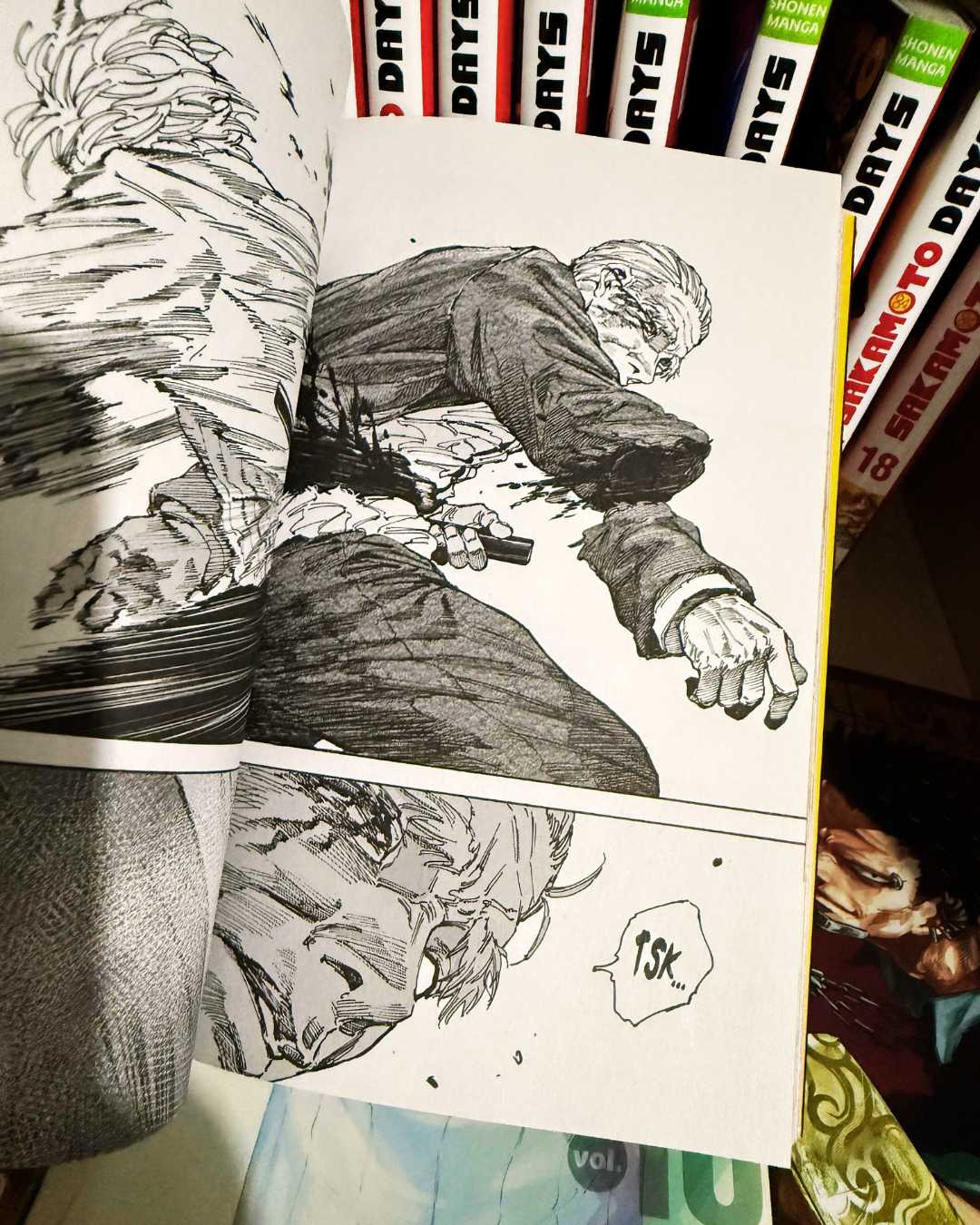 Graphiquement, Sakamoto Days est une vraie réussite. Le trait de Yuto Suzuki est à la fois clair, expressif et incroyablement fluide. Les scènes d’action sont lisibles, dynamiques et souvent impressionnantes par leur inventivité. Chaque combat raconte quelque chose, sans jamais devenir confus. Les expressions des personnages, qu’elles soient comiques ou sérieuses, renforcent énormément l’impact émotionnel du récit. Tome après tome, le dessin gagne en maîtrise, ce qui rend la lecture encore plus addictive.