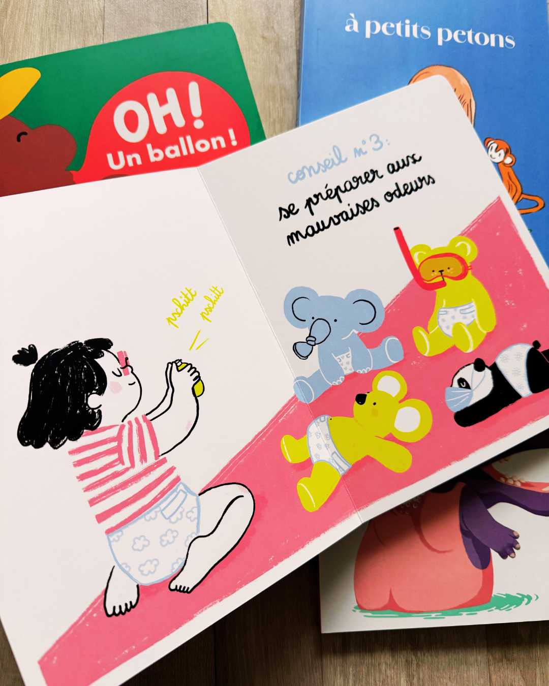 J’ai trouvé cette mini-collection vraiment très sympa. Ces albums sont à la fois simples, intelligents et très justes dans ce qu’ils racontent du quotidien des tout-petits. Les couches mode d’emploi fait sourire les parents par son clin d’œil malicieux, tandis que À petits petons accompagne avec tendresse les premiers pas vers l’autonomie et ses petits bonheurs. Oh ! Un ballon ! est un petit bijou de spontanéité et de joie, et C’est l’histoire d’un hippopotame joue avec l’absurde et la surprise d’une façon très efficace auprès des enfants. Ce sont des livres que l’on prend plaisir à relire encore et encore.
