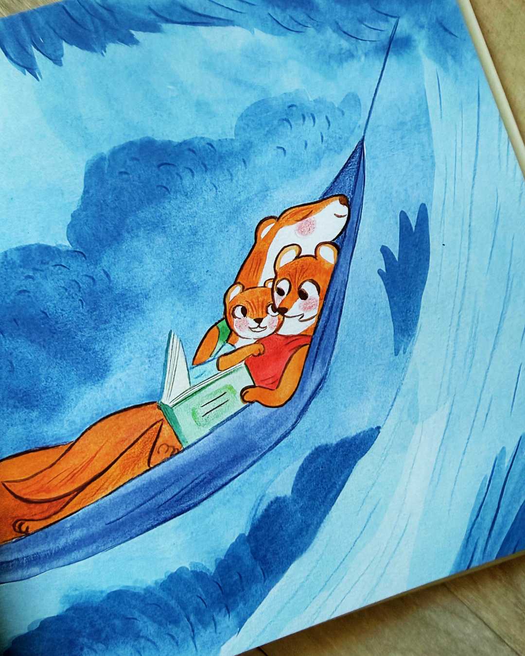 Les illustrations d’Amandine Meyer sont tout simplement magnifiques. Douces, chaleureuses, baignées de couleurs tendres et réconfortantes, elles accompagnent parfaitement le texte. Les personnages animaux, pleins de tendresse, expriment l’amour, la protection et la complicité avec beaucoup de délicatesse. Chaque page invite à ralentir, à observer, à se blottir un peu plus près.