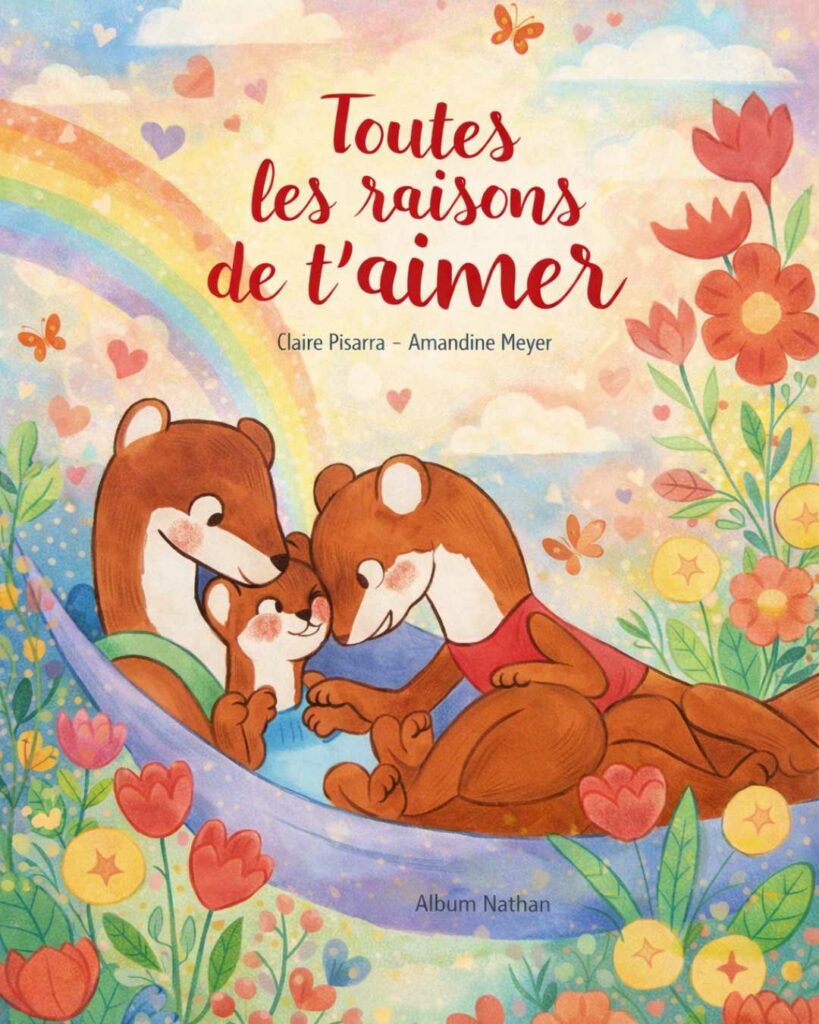 Mon avis : Toutes les raisons de t’aimer, écrit par Claire Pisarra et illustré par Amandine Meyer, est un album des éditions Nathan qui aborde avec une infinie délicatesse les thèmes de l’amour inconditionnel, du lien parent-enfant, de la sécurité affective et de la tendresse partagée au quotidien.