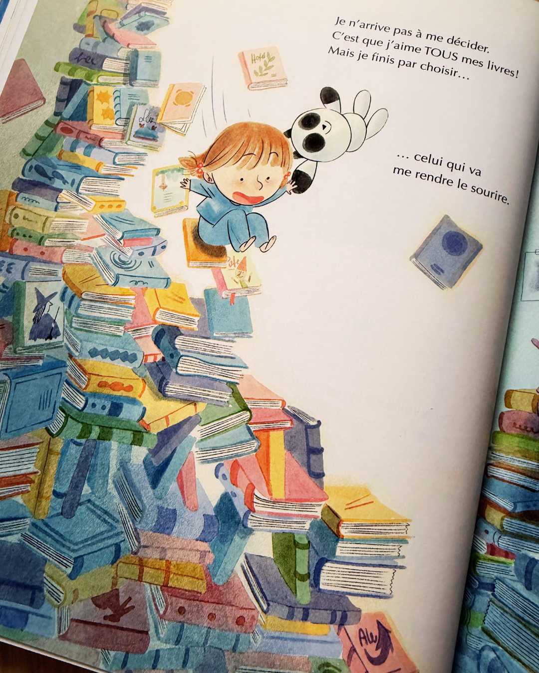 J’ai beaucoup aimé la manière dont cet album aborde les petits tracas du quotidien, ceux que les adultes ont parfois tendance à minimiser mais qui prennent une place immense dans le cœur des enfants. Le récit est fluide, accessible, et surtout profondément réconfortant. On ne cherche pas ici à nier les émotions négatives, mais plutôt à montrer qu’il existe des ressources pour aller mieux, et que les livres peuvent en faire partie. En tant que maman et amoureuse de littérature jeunesse, je trouve ce message particulièrement juste et précieux.