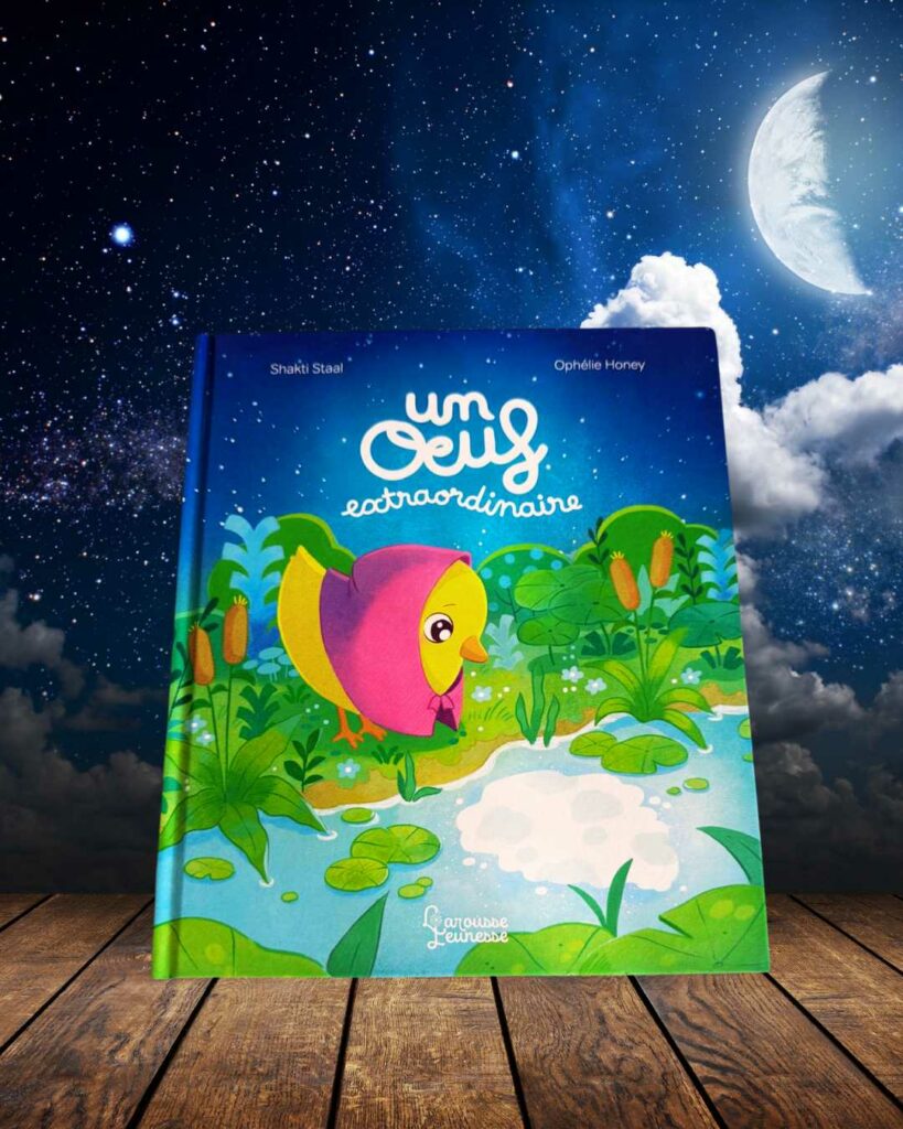 Présentation de cette histoire : Chaque année, le lapin de Pâques choisit les plus beaux oeufs dans le poulailler pour les décorer. En prévision de son arrivée, Poussin essaie d’en pondre un, sans succès ! Cependant, rien n’est impossible pour l’impatient Poussin. S’il ne peut pas pondre un oeuf, il ira en chercher un, et pas n’importe lequel, celui qui se trouve dans le ciel !