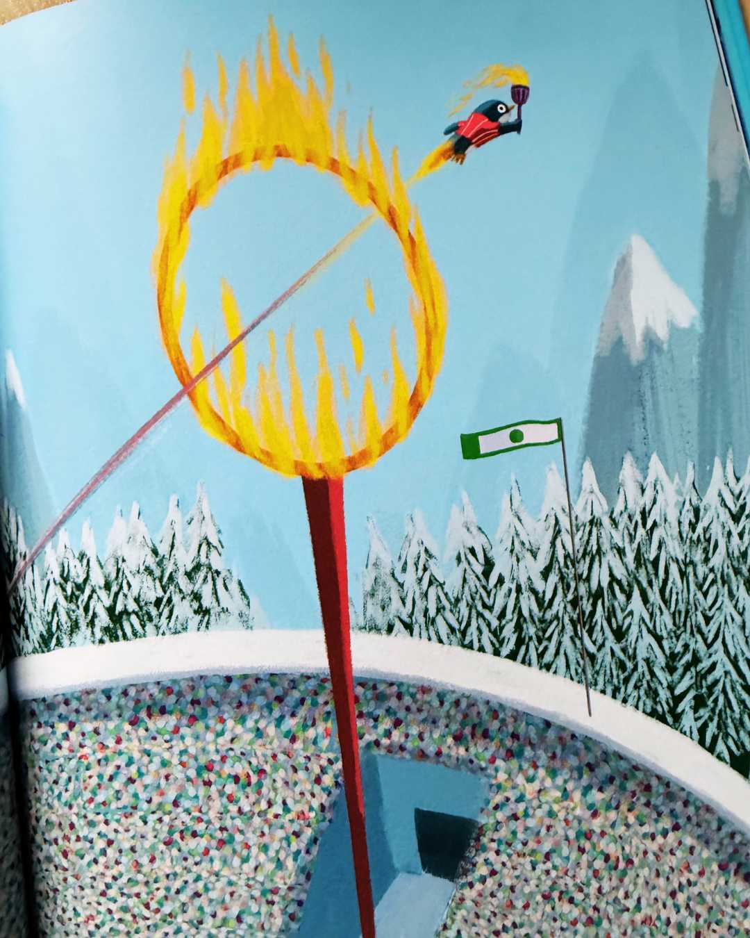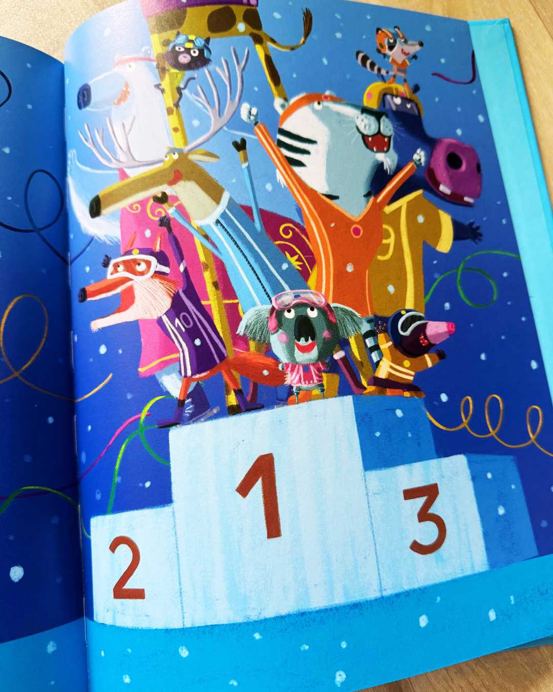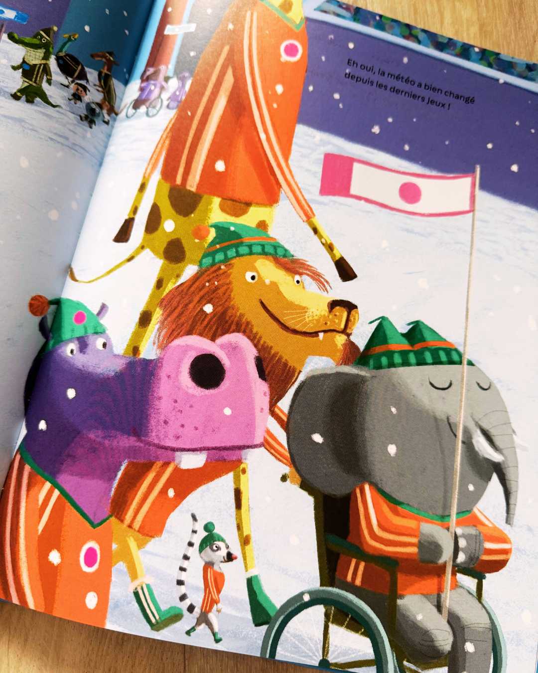 Dès les premières pages, j’ai été séduite par le ton dynamique et chaleureux de l’album. La lecture est rythmée, entraînante, et donne immédiatement envie de bouger, de crier, d’encourager. Le texte est parfaitement adapté aux jeunes lecteurs : ni trop long, ni trop dense, il réussit à transmettre l’excitation des jeux d’hiver avec toujours beaucoup d’humour. C’est un livre qui se lit avec plaisir, aussi bien à voix haute qu’en lecture partagée, et qui donne le sourire.